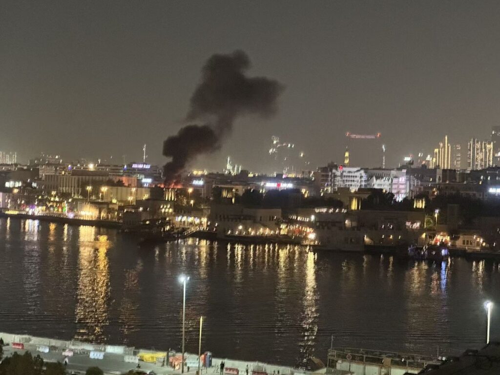 تصاعد ألسنة اللهب والدخان من القنصلية الأميركية في دبي عقب هجوم