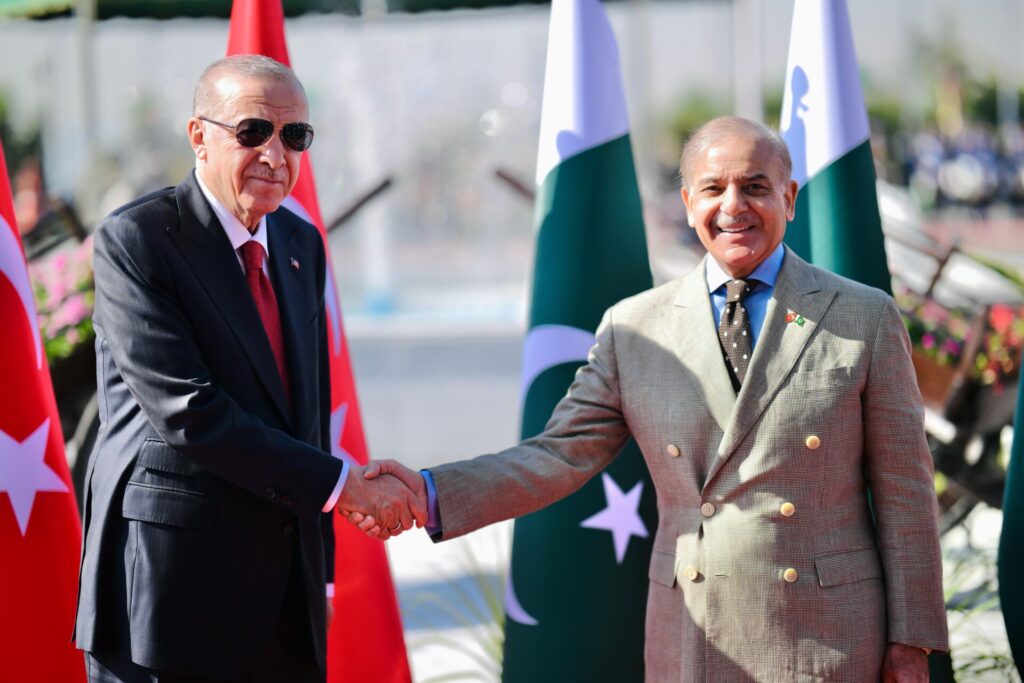 رحب رئيس الوزراء شهباز بحرارة بالرئيس أردوغان عند المدخل الرئيسي لمنزل رئيس الوزراء.