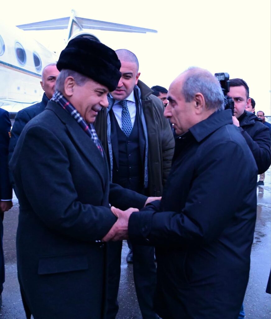 وصل رئيس الوزراء محمد شهباز شريف إلى هنا يوم الأحد في زيارة رسمية تستغرق يومين إلى جمهورية أذربيجان.
