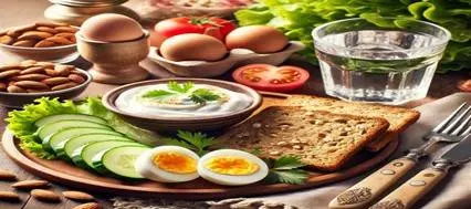 تساعد في الهضم وتمنع ارتفاع السكر المفاجئ بعد الأكل، مثل الخيار، الطماطم، الجرجير، والخس، والفلفل الحلو، بالإضافة إلى السوائل الصحية.