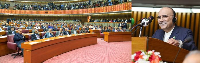 أثنى الرئيس الباكستاني آصف علي زرداري على دعم “الأصدقاء الموثوقين”، مثل المملكة العربية السعودية، ودولة الإمارات العربية المتحدة، والصين، وتركيا، والدول الأخرى، في تعزيز الاستقرار الاقتصادي والمالي لباكستان. وأكد عزم باكستان على تقوية الروابط الودية مع هذه الدول، فضلاً عن توسيع وتعميق التعاون الاقتصادي والتجاري مع دول الخليج وآسيا الوسطى، وكذلك الاتحاد الأوروبي، المملكة المتحدة، والولايات المتحدة الأمريكية. جاءت هذه التصريحات خلال كلمة ألقاها في الجلسة المشتركة للبرلمان الوطني الباكستاني بمناسبة بدء السنة البرلمانية الجديدة، بحضور رئيس الوزراء شهباز شريف، والوزراء الفيدراليين، ونواب الجمعية الوطنية، ومجلس الشيوخ، وقادة القوات المسلحة الباكستانية.