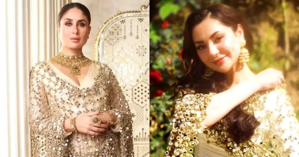 تم تنسيق نفس الدوبتة المرآة من إتره أوفيسيال لأول مرة من قبل نجمة بوليوود كارينا كابور خان. قامت بتنسيقها مع أناركالي وبعض المجوهرات التقليدية. أضافت لمسة من الفخامة على الإطلالة، وبدت جميلة أيضاً. هذا هو الشكل الذي ظهرت به كارينا كابور خان في نفس الدوبتة التي ارتدتها هانية أمير.