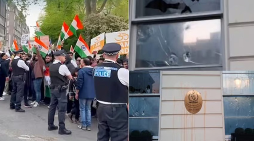 تَعَرَّضَتْ مفوضية باكستان العليا في لندن لأعمال تخريبية في أعقاب مظاهرات لمئاتٍ من المتظاهرين الهنود خارج المبنى