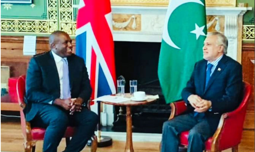 استقبل نائب رئيس الوزراء/وزير الخارجية السناتور محمد إسحاق دار اتصالاً هاتفياً من وزير الخارجية البريطاني ديفيد لامي يوم الاثنين، حيث ناقش الجانبان آخر التطورات الإقليمية