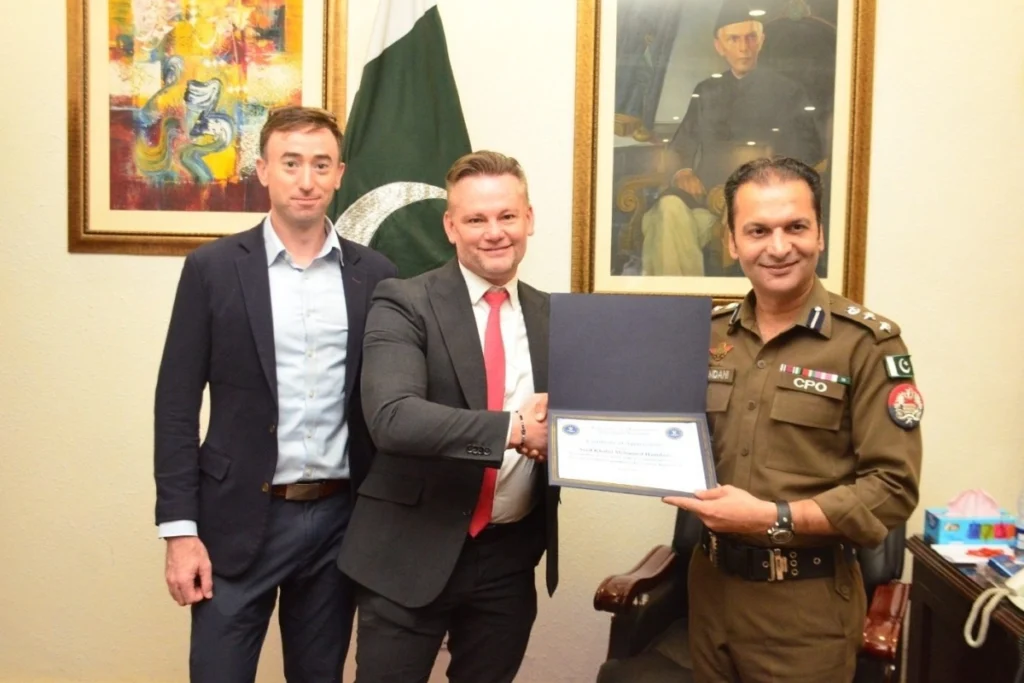 جاء ذلك خلال اجتماع عُقد في مقر شرطة خطوط روالبندي، حيث قدم وفد أمريكي ضم المُلحق القانوني لمكتب التحقيقات الفيدرالي كريس واتكنز، والمساعد القانوني ماكسي مليون، ومحمد نويد، رسالة تقدير إلى ضابط شرطة المدينة (CPO) السيد خالد حمداني