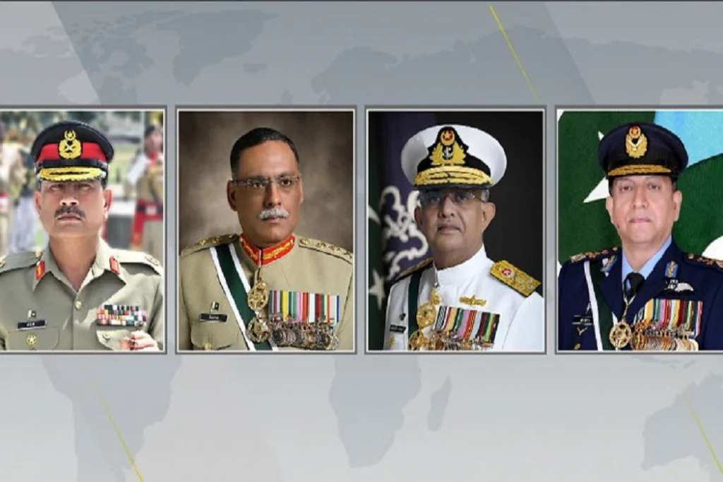 راولبندي: بمناسبة عيد الأضحى المبارك، يتقدم قائد الجيش الميداني المشير سيد عاصم منير، ورئيس لجنة رؤساء الأركان المشتركة، وقائد القوات البحرية، وقائد القوات الجوية، بأحر التهاني إلى شعب باكستان