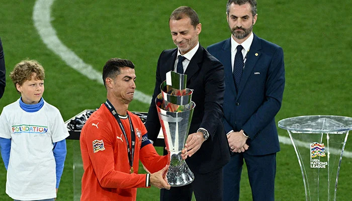 غلبت المشاعر النجم كريستيانو رونالدو بعد أن تُوِّجت البرتغال بلقب دوري الأمم الأوروبية عقب فوز دراماتيكي بركلات الترجيح أمام إسبانيا، في مباراة حافلة بالإثارة