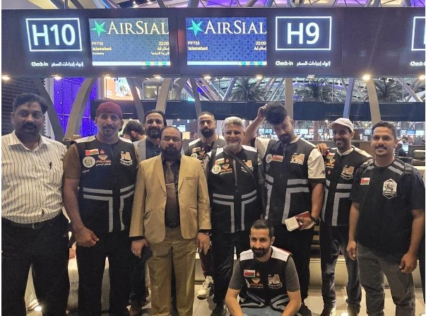 انطلق الوفد من مسقط الدولي في أجواء من الحماسة، حيث ودّعهم مسؤولون من السفارة الباكستانية، قبل أن يصلوا إلى إسلام آباد.
