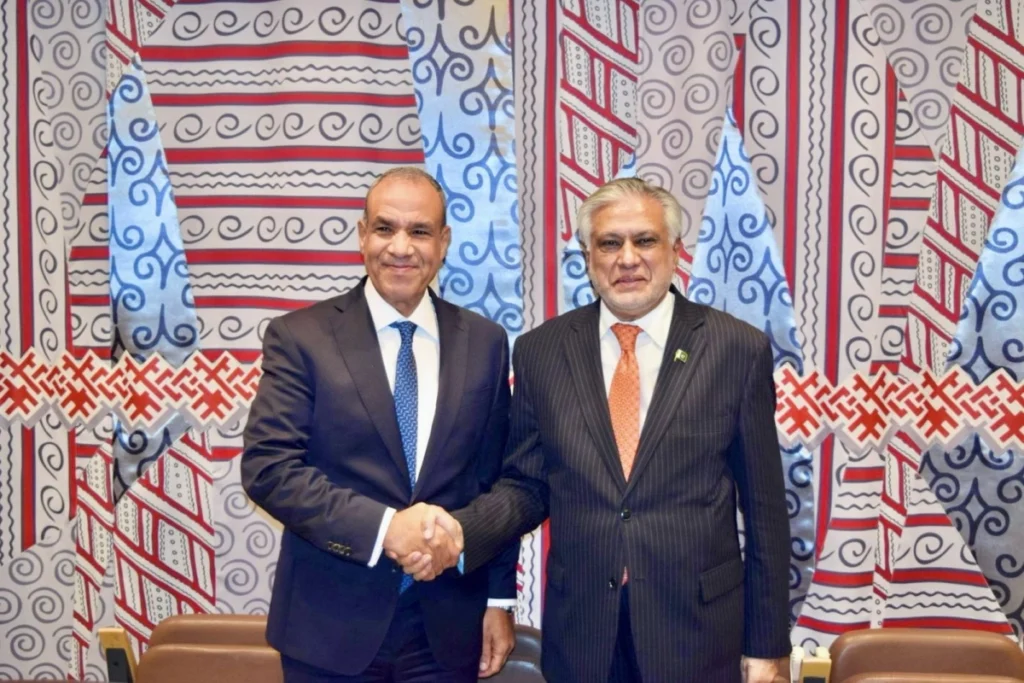 التقى نائب رئيس الوزراء ووزير الخارجية الباكستاني، السيناتور محمد إسحاق دار، بوزير الخارجية المصري الدكتور بدر عبد العاطي، على هامش المؤتمر الدولي بشأن حل الدولتين