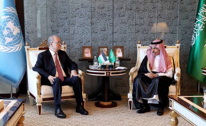 عقد وزير الخارجية السعودي الأمير فيصل بن فرحان ورئيس الوزراء الفلسطيني محمد مصطفى، يوم الثلاثاء، محادثات تناولت تنسيق الجهود الدبلوماسية لإنهاء الحرب الإسرائيلية على غزة، ومعالجة المجاعة الناتجة عنها والتي تؤثر على قرابة مليوني فلسطيني في القطاع.