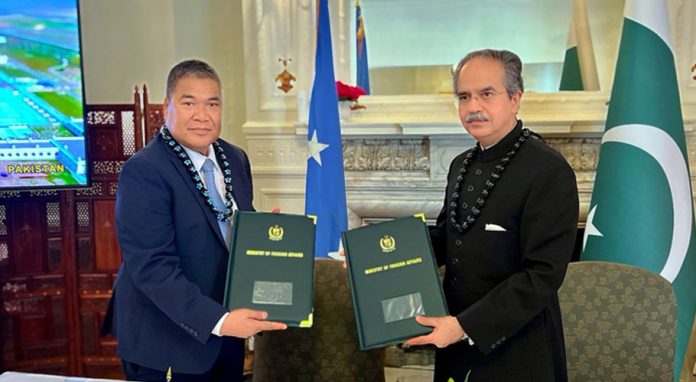 أقامت باكستان وولايات ميكرونيسيا المتحدة، وهي دولة جزرية تقع في غرب المحيط الهادئ، علاقات دبلوماسية خلال حفل أُقيم في نيويورك يوم الخميس