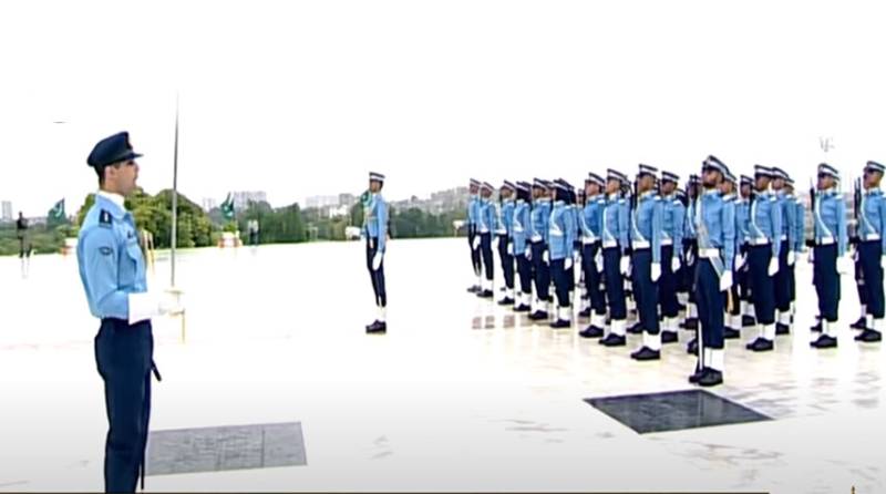 تولى كوكبة من طلبة أكاديمية القوات الجوية الباكستانية “أسغر خان”، المتأنقين بزيهم العسكري، مهمة الحراسة عند ضريح القائد الأعظم محمد علي جناح، خلفًا لقوات حرس الحدود (رينجرز)