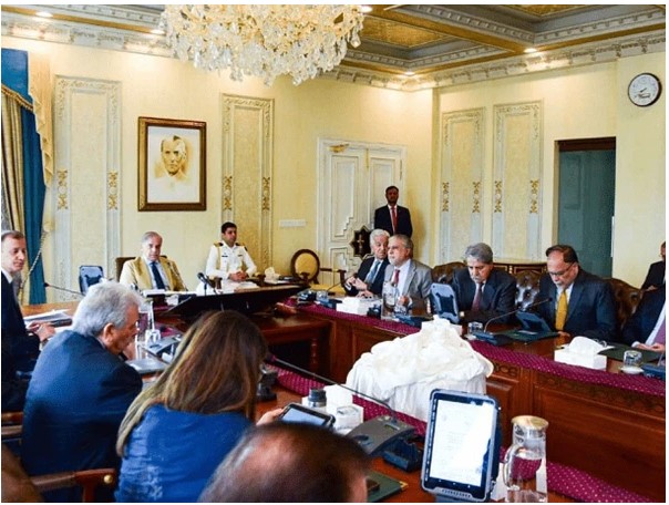 وحضر الاجتماع كل من نائب رئيس الوزراء إسحاق دار، والقائد العام للجيش المارشال عاصم منير، إلى جانب وزراء الدفاع، المالية، الإعلام، التجارة، الطاقة، البترول، البيئة، الشؤون الاقتصادية، الأمن الغذائي، القانون، والمواصلات، إضافة إلى كبار المسؤولين من الوزارات والهيئات المعنية.