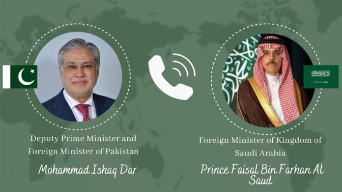 نائب رئيس الوزراء ووزير المالية، السناتور محمد إسحق دار، اتصل يوم الثلاثاء بوزير الخارجية السعودي، الأمير فيصل بن فرحان، وقدم له تهاني الموسم وأطيب التمنيات بمناسبة العام الجديد، والتي قوبلت برد مماثل من نظيره السعودي.