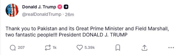 ترامب يشكر باكستان والمشير عاصم منير ورئيس الوزراء شهباز شريف على فتح مضيق هرمزباكستان, عالم • By Rayan ترامب يشكر باكستان والمشير عاصم منير ورئيس الوزراء شهباز شريف على فتح مضيق هرمز
